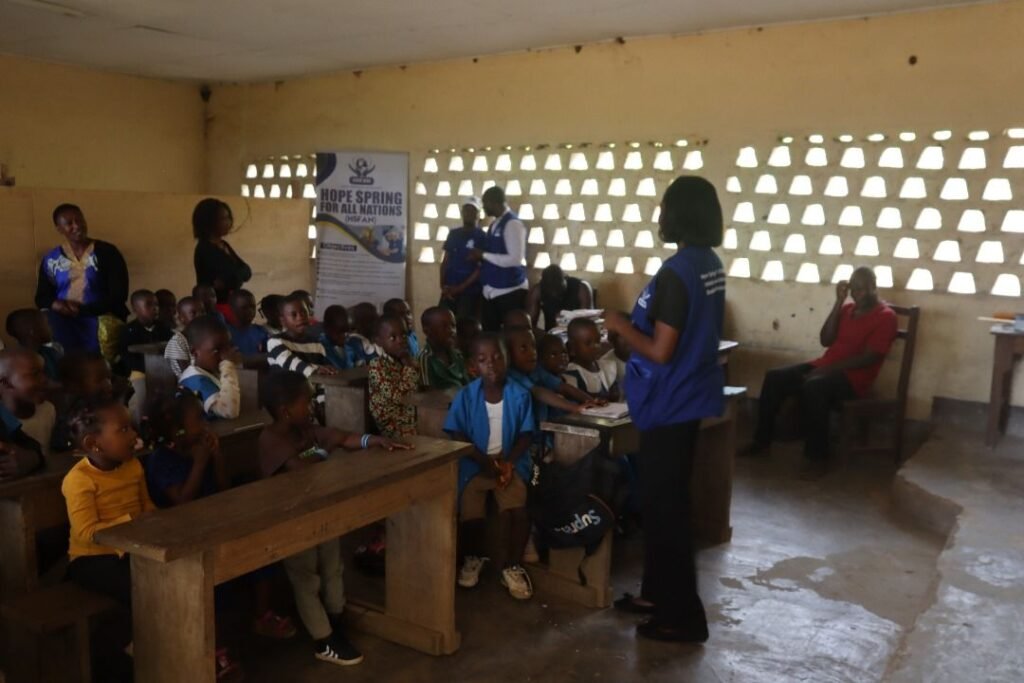 The Bright Future Back-To-School Emergency Support for under privileged groups of children in Nsuke and Mbabe aimed at promoting Early Childhood Education (ECE) for both boys and girls. Hope Springs Global Alliance (HSGA) donated and supported 188 (93 from Nsuke and 95 from Mbabe) under privileged children with educational supplies (books, pens, pencils, rulers, sharpeners and erasers). A need assessment was done to get the target population (beneficiaries) through focus group discussion with community leaders, sensitization and awareness raising campaign. Educational workshops were done with parents and community leaders with emphasizing the needs for ECE.  HSGA believes that, it is the fundamental right for every child to have access to quality education as enshrined in UN SDGs 4 aimed at ensuring inclusive and equitable education and promote lifelong learning opportunities for all. Thus, the importance of early childhood education cannot be over emphasized.